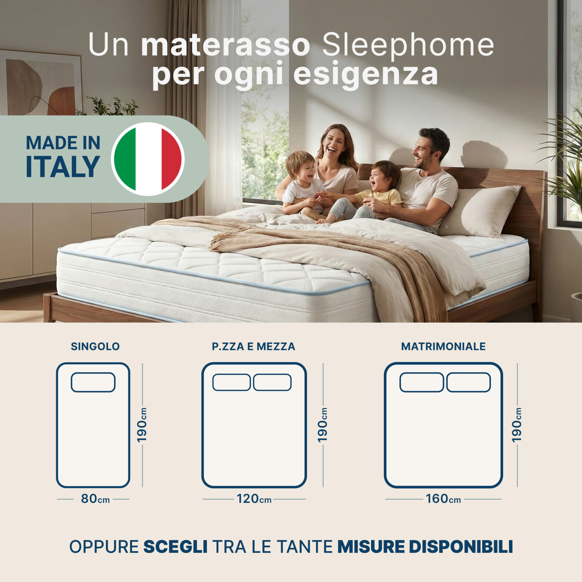 Il Materasso Vaniglia by Sleephome è alto 20 cm ed è un supporto ortopedico ibrido progettato per sostenere ogni tipo di peso e altezza, merito del Dynamic Posture System (DPS) con molleggio rinforzato centralmente e sui bordi che evita affossamenti e supera per qualità e durabilità le tradizionali zone differenziate.